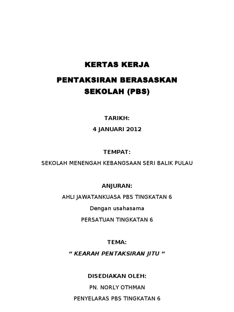 Contoh Kertas Kerja Pentaksiran Berasaskan Sekolah By Tif_869Pranav 30 May, 2022 Post a Comment Contoh Surat Lantikan Pentaksir Pbs Lembaran Kerja Pra Sekolah Lembar Kerja Huruf Abjad Arab 15 Contoh Instrumen Pentaksiran Bilik Darjah Pbd Contoh Soalan Penulisan Darjah 4 Fun Contoh Notes Diagram Kertas Kerja Pbs Pdf Share No comments for "Contoh Kertas Kerja Pentaksiran Berasaskan Sekolah"